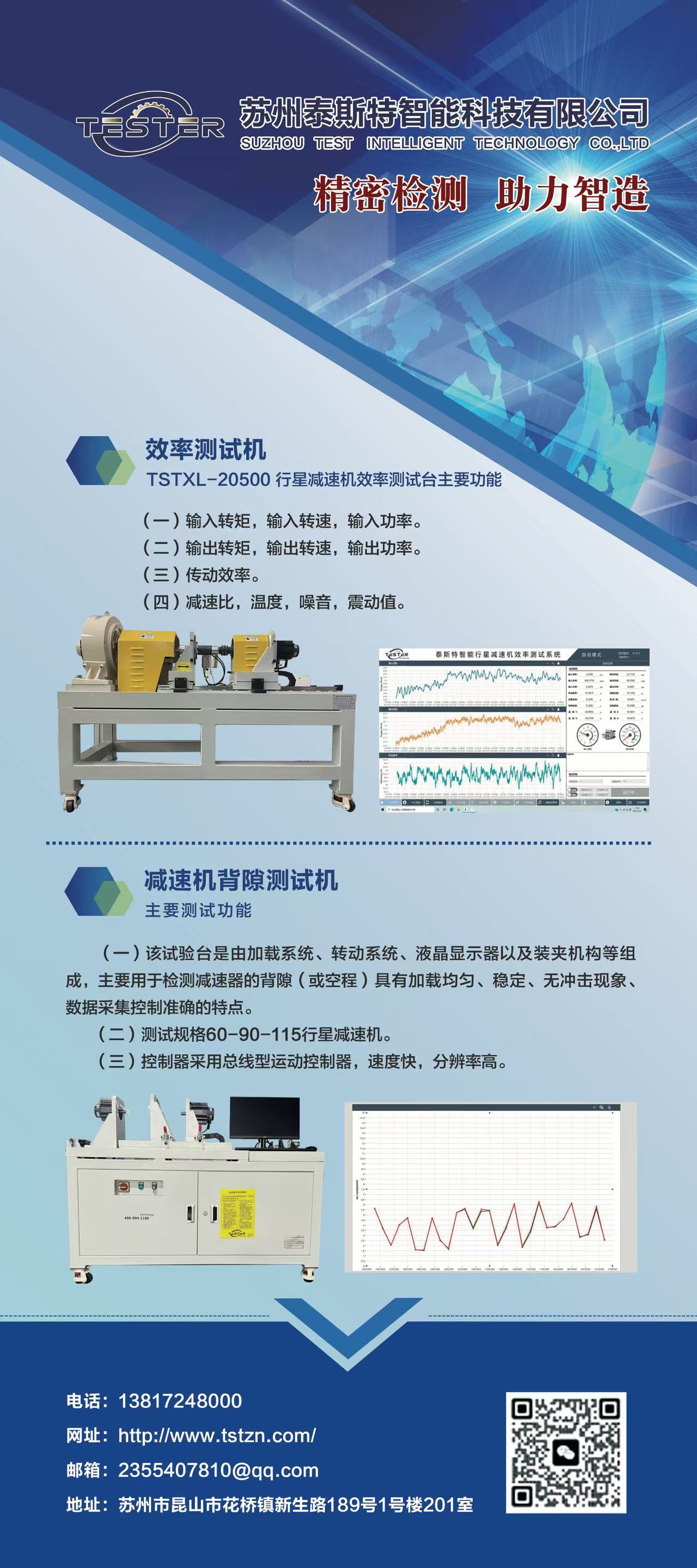 蘇州泰斯特智能科技有限公司以高、新、尖技術力量為核心,專注研發、生產、銷售精密行星減速機背隙測試機,減速機測功機,電機測功機,伺服壓力機,RV減速機,諧波減速機角度傳遞誤差測試,啟動力矩測試,背隙,剛性測試,回差測試,彈簧常數,滯回曲線測試設備,排針機相關自動化設備的廠家, 本著“專注、只為更好”為核心理念,通過先進的管理手段,將技術、品質工藝改進,有效的融為一體,為客戶提供精密、穩定、快捷的減速機檢測產品及方案。
